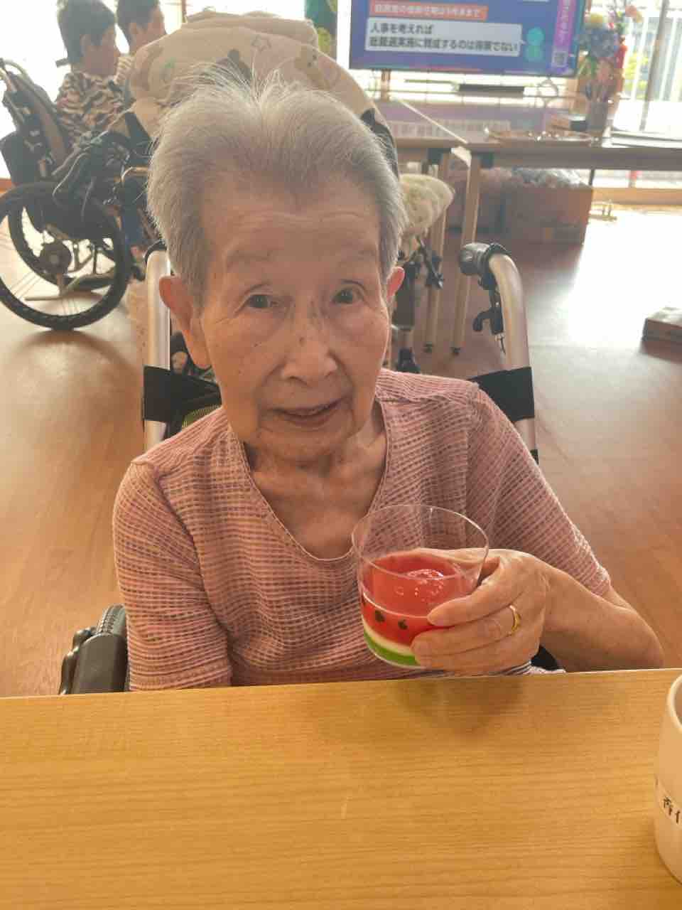 施設で夏らしいおやつレクリエーションとして「すいかゼリー」
