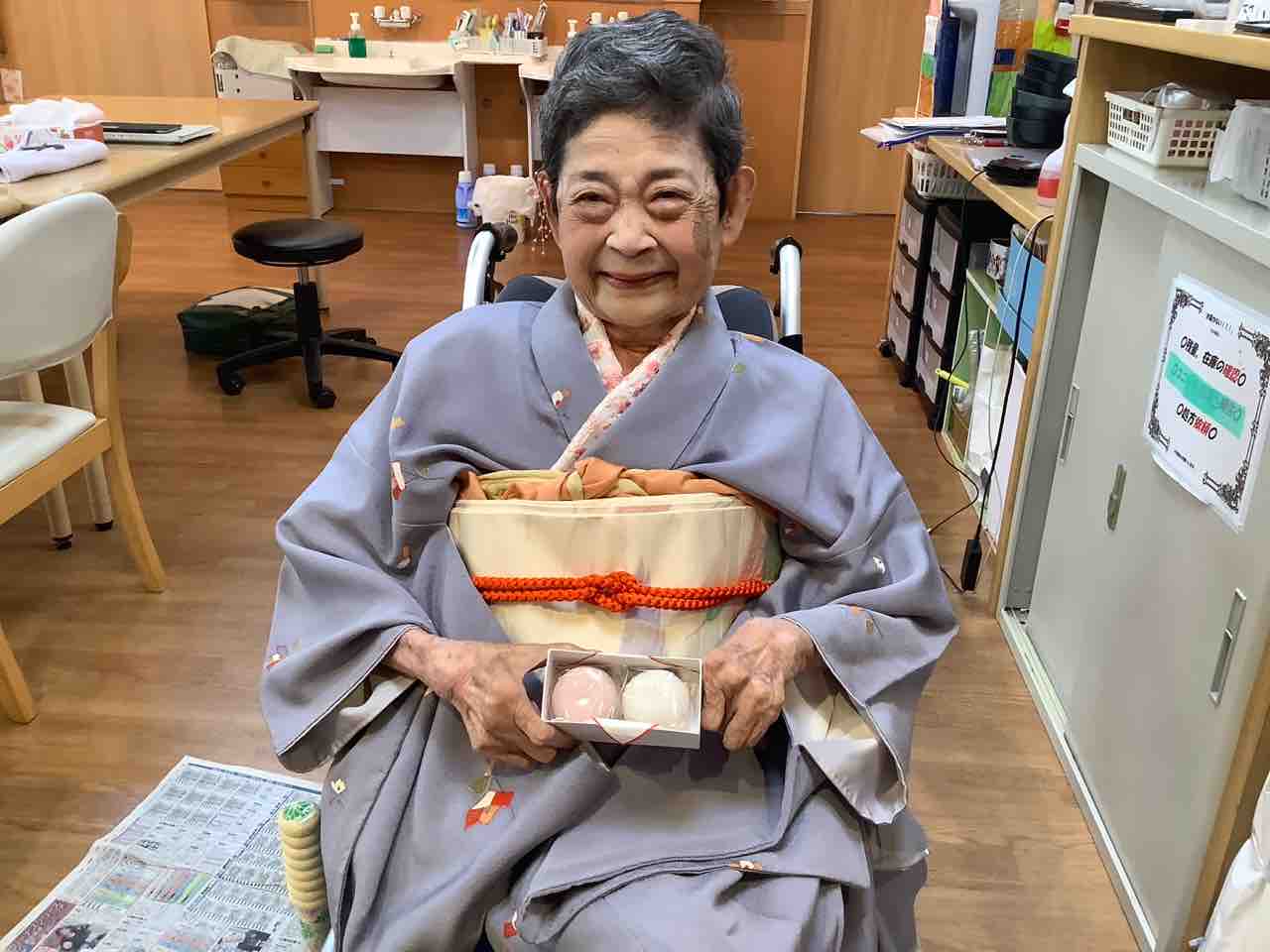先日神の倉では9、月の敬老の日に日頃の感謝の気持ちを込めて、女性の利用者様に着物の着付けを行いました。