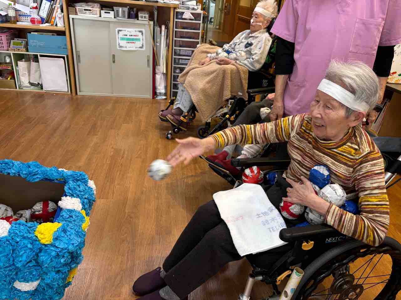 先日シルバーホーム神の倉では、秋のレクリエーションとして「秋の体育祭」を開催しました。玉入れや風船送りなど、体を大きく動かさずに楽しめる競技を中心に行い、参加された皆様は終始笑顔で取り組まれていました。競技中には「がんばれ!」と声援が飛び交い、普段とは少し違う活気ある時間となりました。☺️