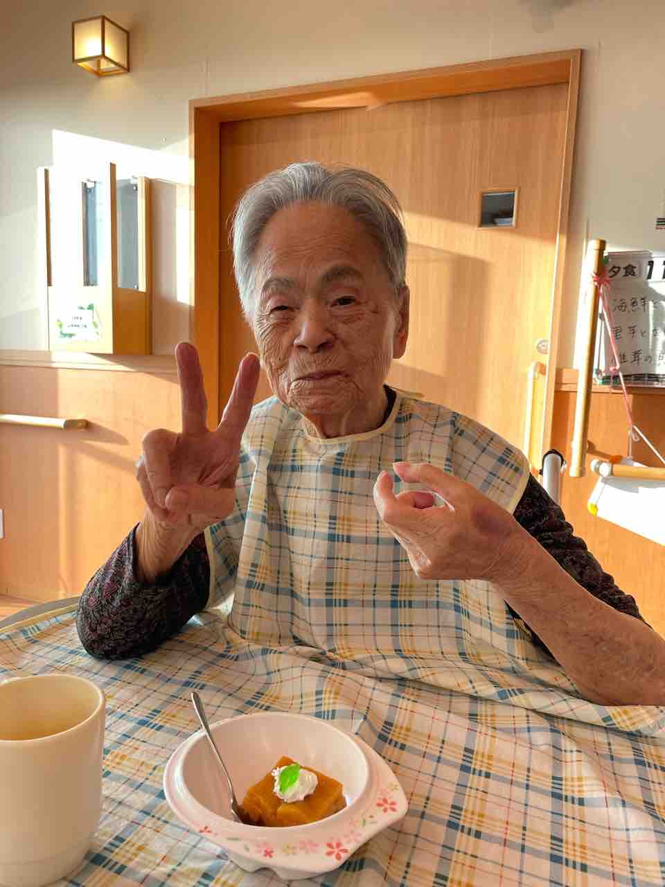 鮮やかな柿の色合いに皆さま思わず笑顔がこぼれ、「甘くておいしいね」「昔よく食べたわ」といったお声も聞かれました。ゆったりと談笑しながら味わっていただく時間は、利用者さま同士の交流にもつながり、とても和やかな雰囲気に包まれました。